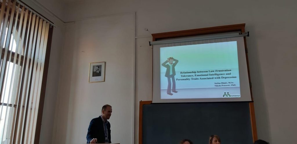 Članovi savetovališta “Metanoja” su prisustvovali ovom naučnom skupu kako bi unapredili i proširili znanja iz ove oblasti i kako bi u budućnosti pružili kvalitetnije psihoterapijske usluge klijentima. Jedan od članova savetovališta “Metanoja”, mr.sc. Stefan Dimić, prezentovao rezultate svog istraživanja na temu Povezanost između niske tolerancije na frustraciju emocionalne inteligencije i crta ličnosti povezanih sa depresijom.